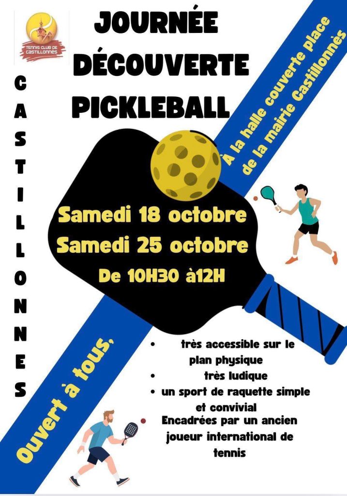 Le club de tennis propose une initiation au pickleball les samedis 18 et 25 octobre…
