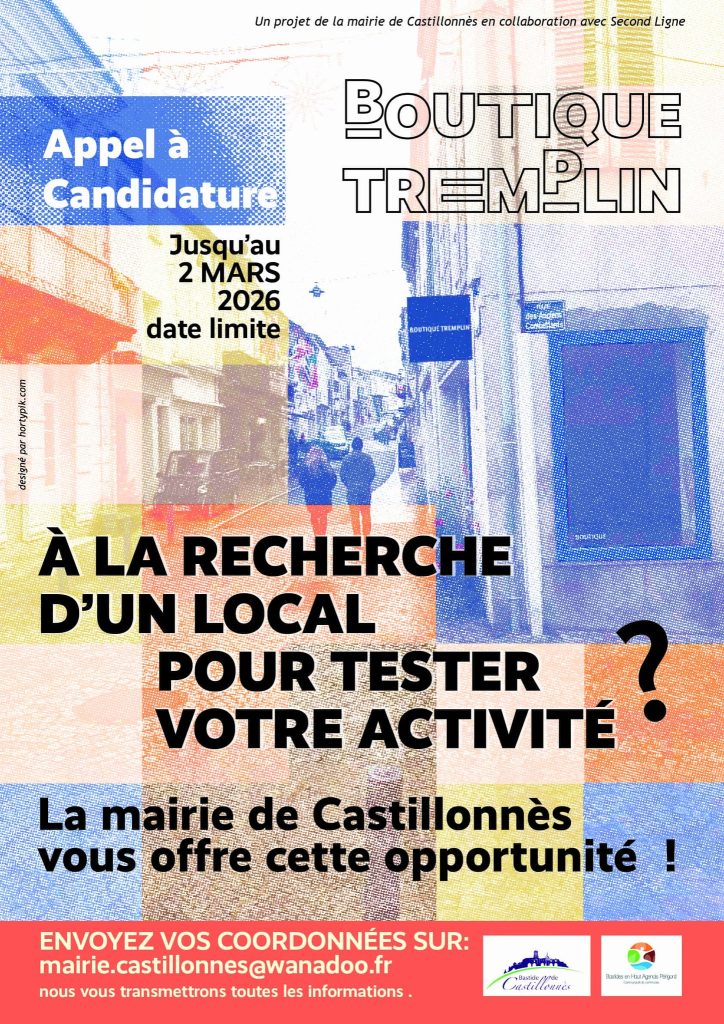 La Boutique Tremplin de Castillonnès cherche son commerçant ! Une année tremplin pour tester son…